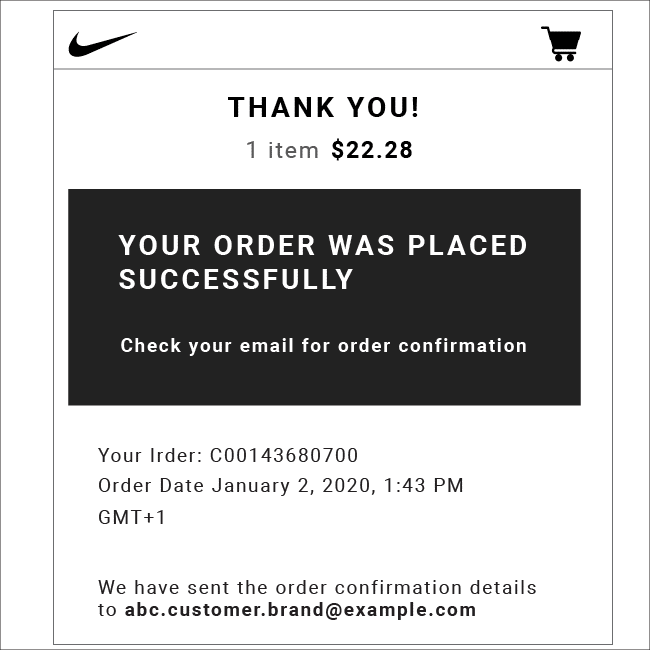 Nike: Nike’s purchase confirmation emails provide a summary of the items purchased, the order number, and the shipping address. They also include a reminder of Nike’s return policy, a call to action to track the shipment, and a promotional offer for free shipping on future orders.
