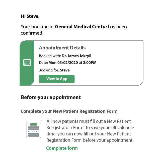 Doctor’s Office: A doctor’s office appointment confirmation email typically includes the patient’s name, the date and time of the appointment, the name of the doctor, and the location of the office. They may also include a reminder of any preparation the patient needs to do before the appointment, and instructions on how to reschedule or cancel the appointment.