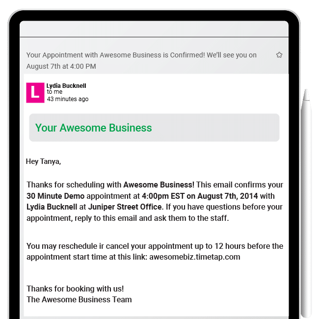 Confirmation emails provide a professional and personalized touch to customer interactions: By sending a confirmation email, businesses show that they value their customers and their time. It also gives a sense of professionalism to the interaction, which can help to build trust and credibility.